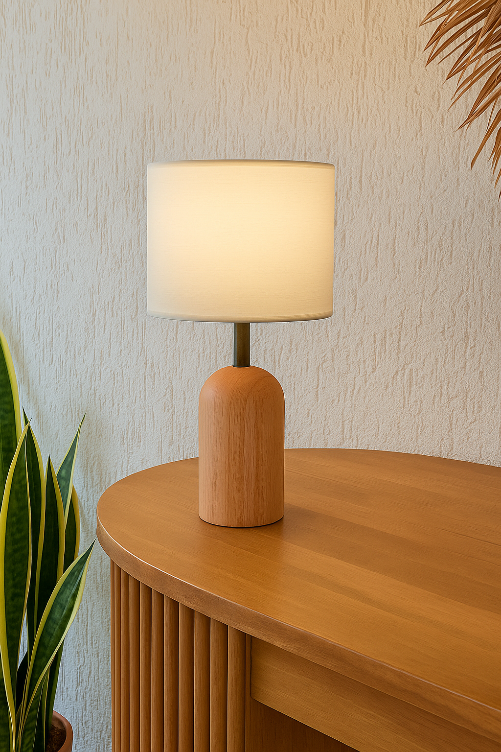 Ev Dekorasyonu için Ahşap ve Kumaş Silindir Abajur Ra