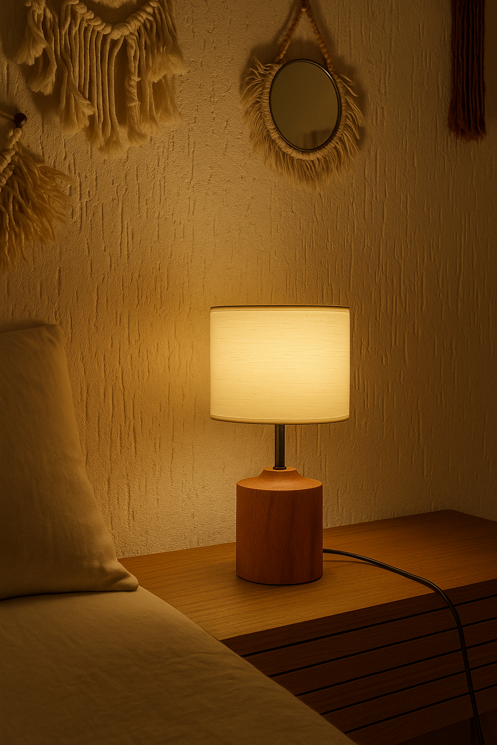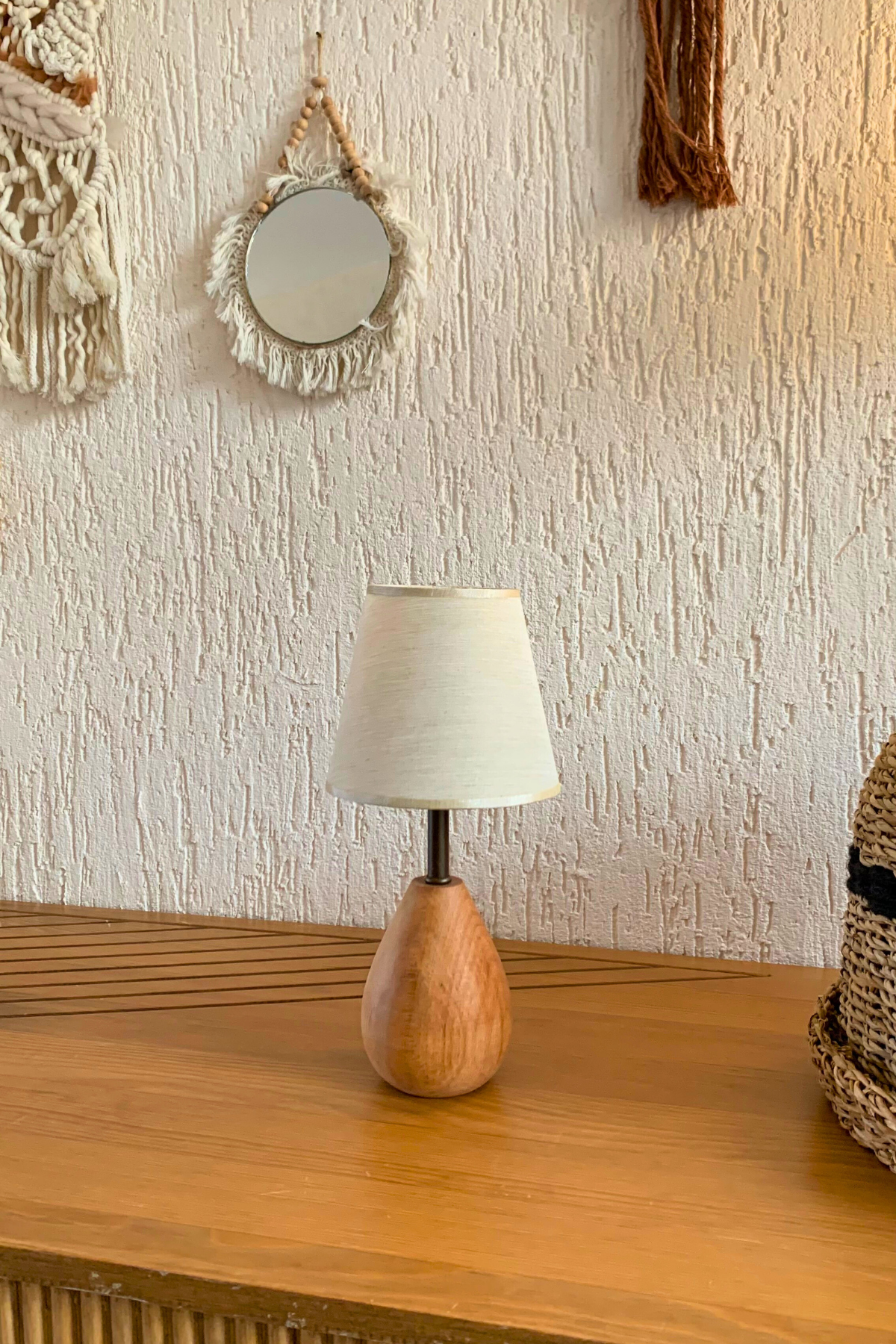 Modern ve Şık Ahşap Kumaş Abajur Leton